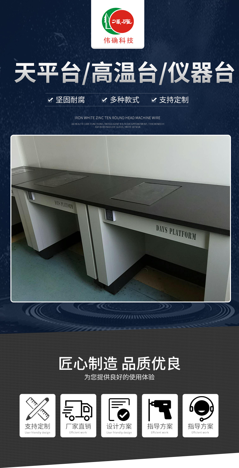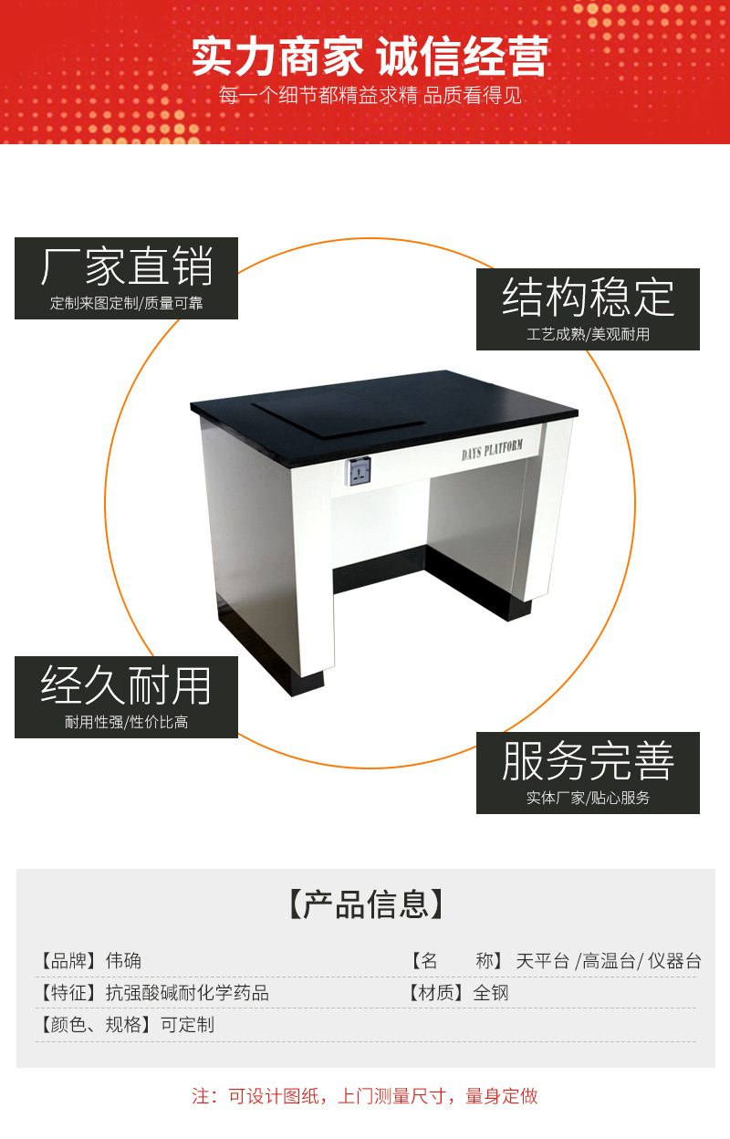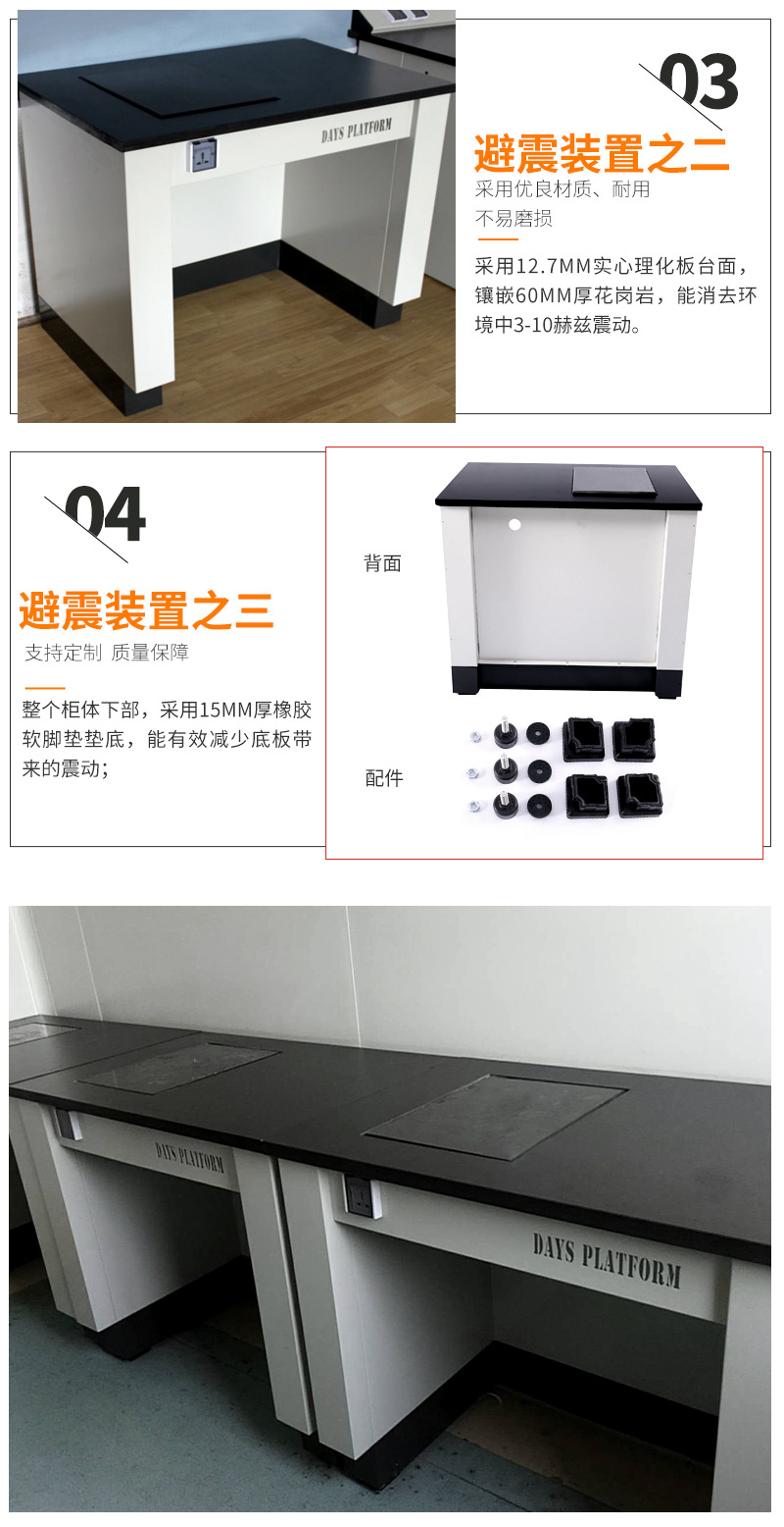 柜體:柜體采用0.8m厚鍍鋅鋼板折邊焊接而成,采用純環(huán)氧樹(shù)脂靜電噴涂高溫固化,具有較高耐蝕性能。 臺(tái)面:工作臺(tái)面分為兩部分,采用12.7實(shí)心板及60MM厚花崗巖臺(tái)面。 電源:10A多功能防濺