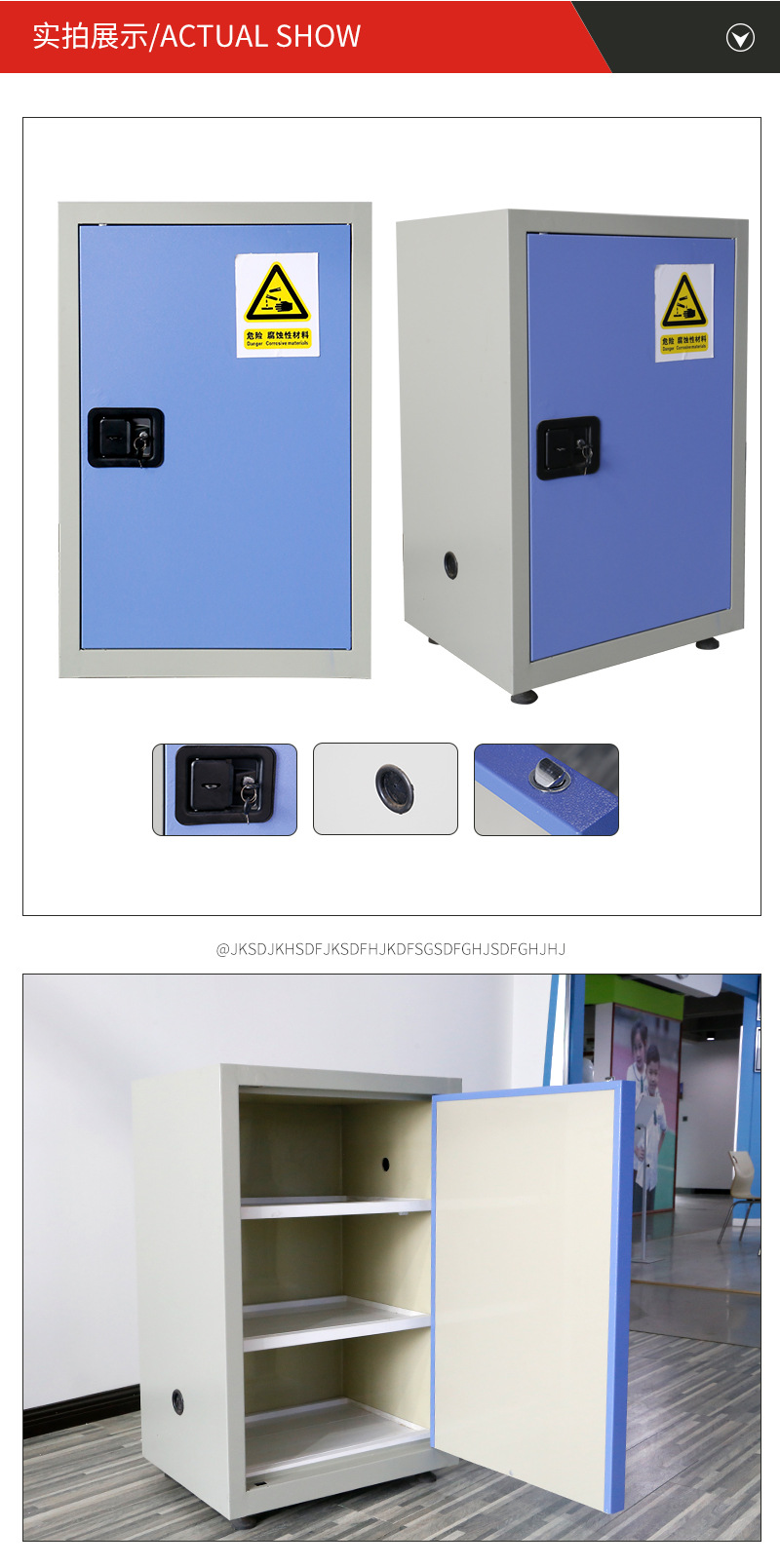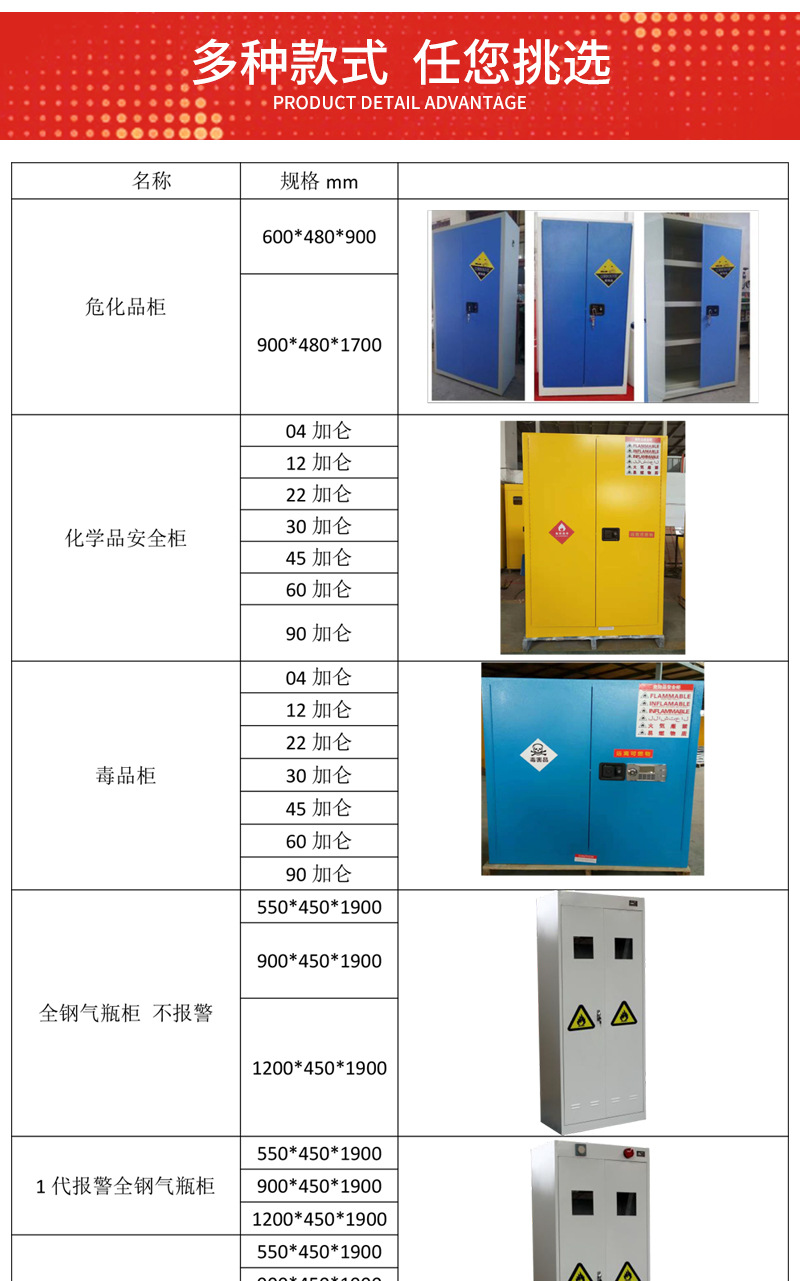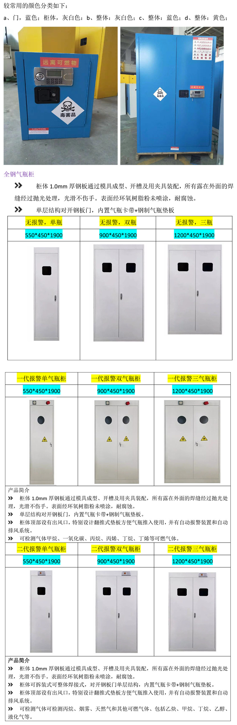 柜體1.0mm厚鋼板通過模具成型、開槽及用夾具裝配,所有露在外面的焊縫經(jīng)過拋光處理,光滑不傷手。表面經(jīng)環(huán)氧樹脂粉未噴涂,耐腐蝕。 單層結(jié)構(gòu)對(duì)開鋼板門,內(nèi)置氣瓶卡帶+鋼制氣瓶墊板