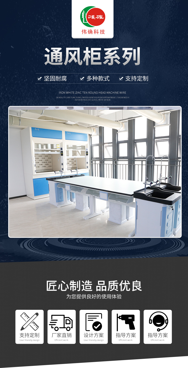 工作臺面:12.7mm厚實(shí)芯理化板臺面.配置水、電。通風(fēng)柜控制面板:液晶屏控制面板。移動(dòng)視窗5mm鋼化優(yōu)質(zhì)玻璃產(chǎn)品,移門上下滑動(dòng)裝置采用電梯配重方式結(jié)構(gòu),無級任意停留。